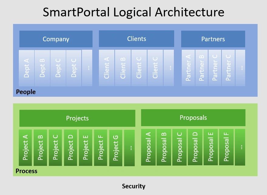 Because our proprietary 2-tiered collaboration architecture separates people-centric from process-centic portals, security is simplified and strengthened while automated links between related portals enable easier navigation and access.